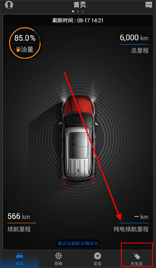 1、打开软件,点击右下角“车生活”;