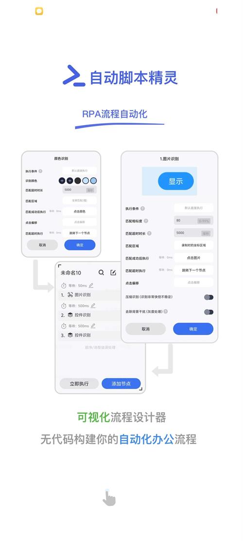 可以解放双手,让重复的事情自动完成的工具,自动脚本精灵app免费版,可以直接使用,录制一次操作流程,然后设置自动执行就可以帮你快速完成任务了,可以设置定时自动,极速点击模式,部分重复情游戏任务可以直接挂机操作,非常方便好用,软件还有很多功能,可以自行使用,内置了使用说明教程。