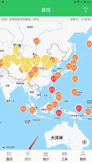 1、下载打开地震预警助手手机软件在震况里面可以查看全球范围一年内所有震级;