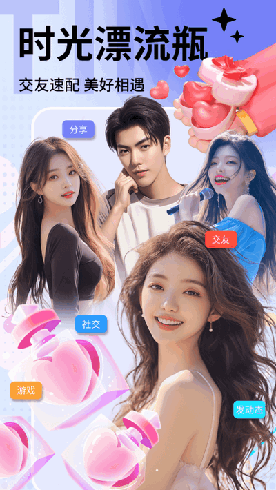1.时间漂流瓶是一款超级流行的多人实时语音约会情侣“at cp”软件,“漂流瓶”一起玩“CP”;