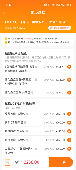 体检前,可根据您的健康状况、生活习惯,为您量身定制个性化体检方案,避免过度体检;体检后,可通过优健康APP在线领取体检报告,还提供专家免费解读等实用服务,为您实时解答健康疑问。