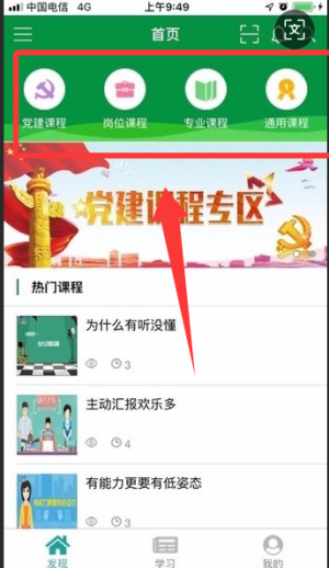 1、打开邮银e学app并登录账号,在首页就能看到最新的培训课程和考试资讯,选择你需要的内容进入学习。