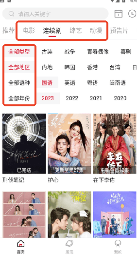 如果用户们想看电视剧的话,可以点击电视剧,根据类型,地区,语种,年份筛选自己喜欢的电视剧