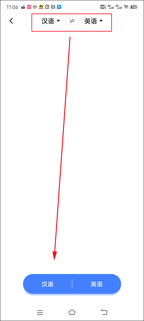 1、在搜索栏输入英语单词或句子,选择你要翻译的语言后,点击翻译键后,它就会自动翻译出来,该功能无需登录也可免费使用
