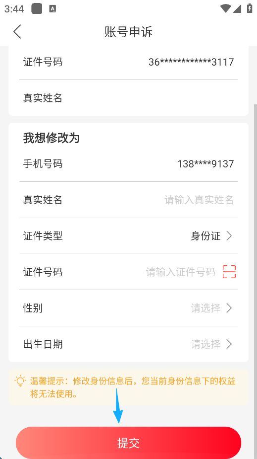 5、填写完需要修改的信息后,点击屏幕下方的“提交”。