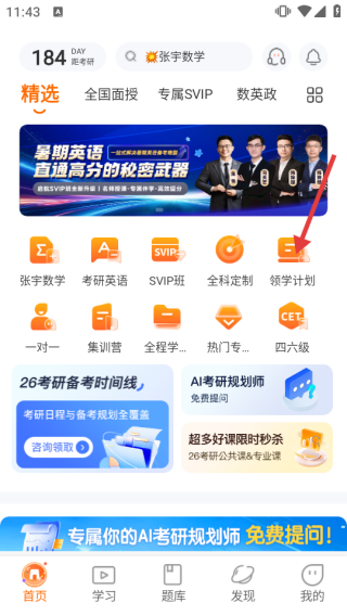 2、在首页,点【领学计划】,进入课程详情页。