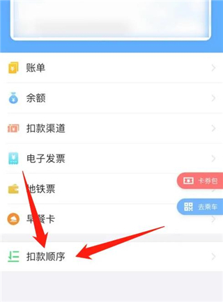2、进入我的钱包的页面里,点击扣款顺序。