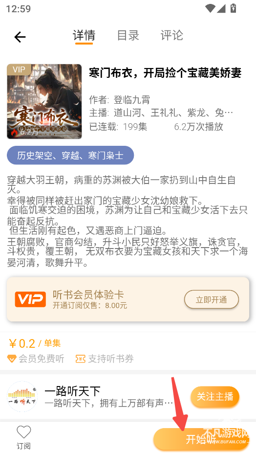 9、点击任意作品的封面即可进入详情页,然后点击下面的开始听。