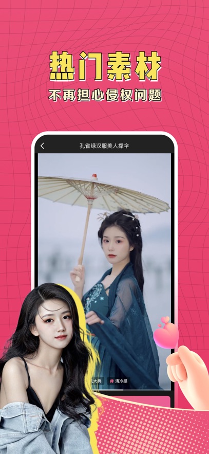 2.海量的剪辑素材用户能随意的使用,方便用户的使用。