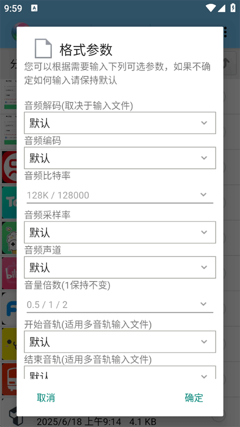 4.自定义转换参数:你可以自定义转换参数,如果不确定如何输入,可以选择保持默认设置。