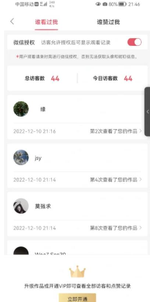 3、进入后能够检查访客数,假如想检查更多访客概况,就需求注册会员啦。