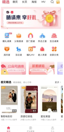 在线制作平台一站式设计服务用户可直接挑选,适用于婚礼请帖,生日等,生成各类祝福语句,掌上即可快速制作,极简操作海量模板多端同步管理生成电子请帖发帖等操作。