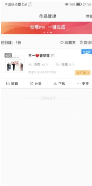 登录婚贝请柬APP→进入【作品管理】→选择需编辑的请柬→点击【编辑】→预览到尾页→点击【去尾页】按钮。关闭其他广告,操作如下: