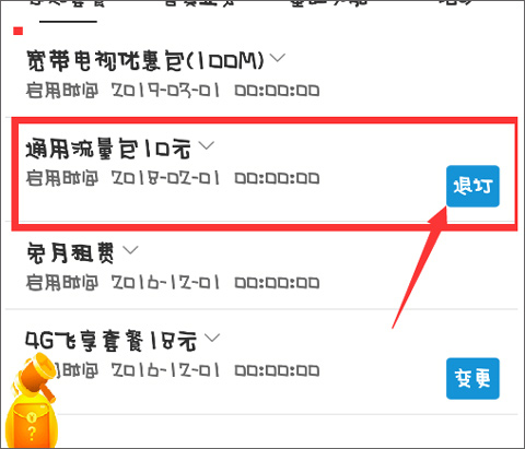 3、打开已开业务页面,用户可看到自己已开通的套餐业务和其他增值业务,点击右侧的退订按钮即可退订的套餐;