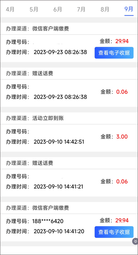 3、进入充值记录页面,用户可以查看详细月份的充值记录和充值金额。