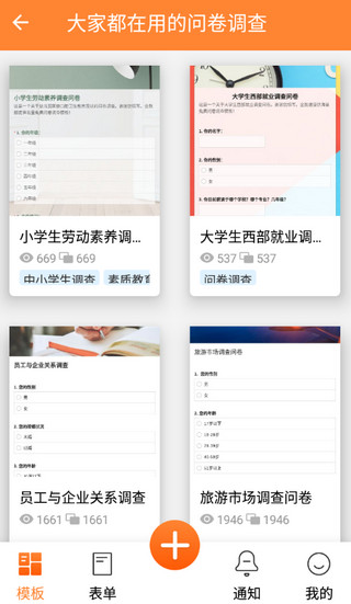 -更清晰的主页,可以选择场景创建表单,也可以选择合适的模板创建表单