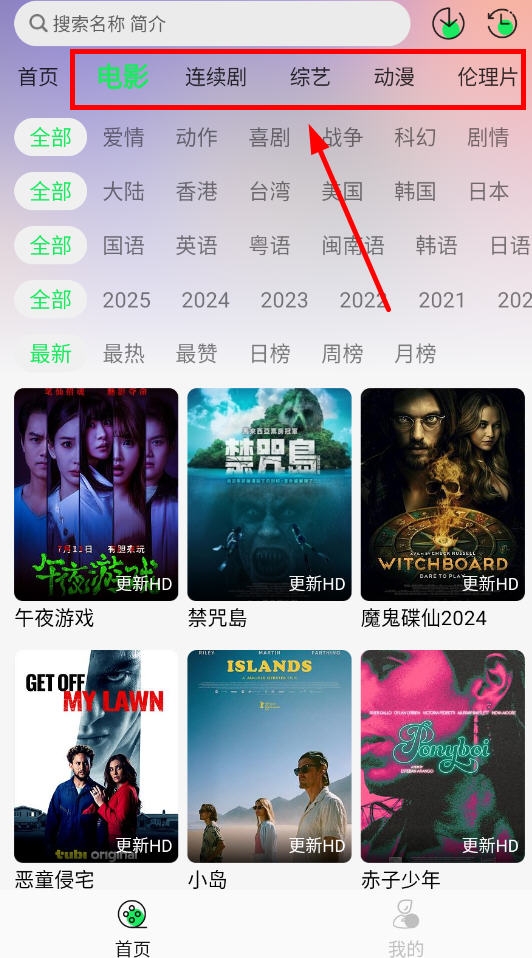 2、在首页浏览推荐的剧集,下滑可以找到更多类目的热门推荐;