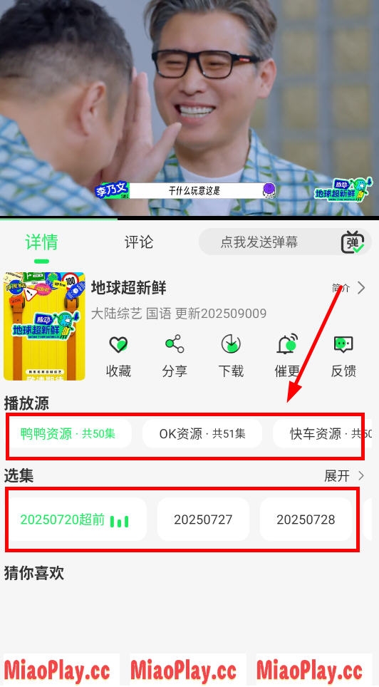 6、点开直接跳转播放,可以调整播放源和观看集数。