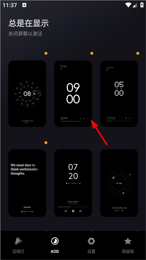 6、边缘灯设置后,用户打开AOD,用户可在该页面选择喜欢的屏幕显示方式;