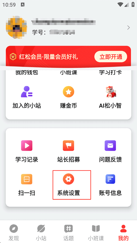 4、切换到小站想要回到红松:点击我的-系统设置;