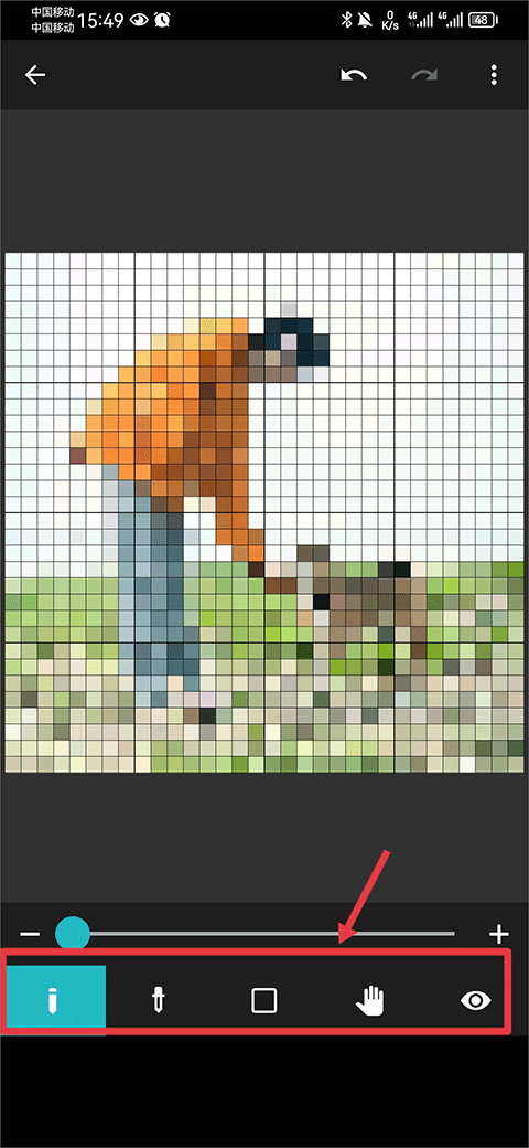 3、最后选中第一个画笔工具后就可以在画布小格子中进行颜色填充啦