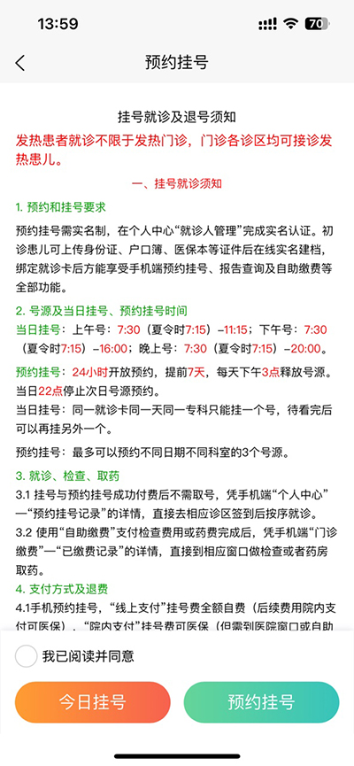2、跳转页面挂号须知了解一下,有“今日挂号”和“预约挂号”两选项;