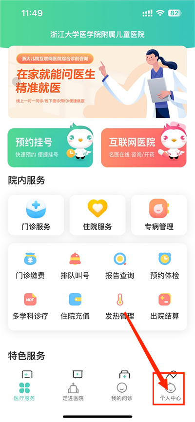 1、首先需要在本站下载“浙大儿院”APP,点击“个人中心”;