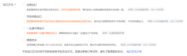 d. 出口方式:出口方式一经选定,在付款前只可修改一次,付款后不能再修改。
