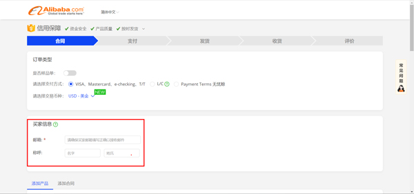 第一步:登录到【my alibaba后台->交易管理>起草信用保障订单】