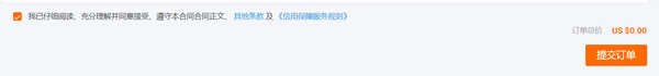 最后一步:勾选条款后提交订单