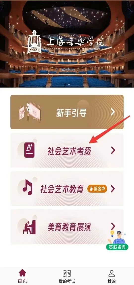 1、打开软件,点击考级报名入口