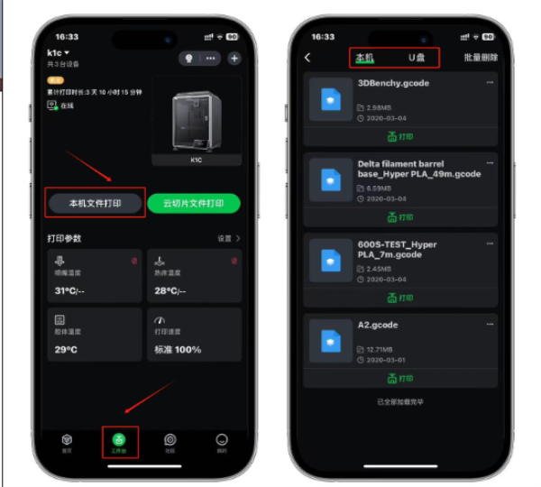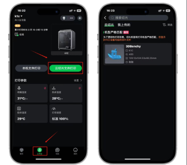 2、您还可以通过”工作台“"云切片文件打印“路径下的打印文件发打印任务。
