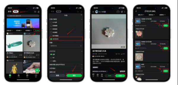 1、打开App,点击”首页“的"模型页“进行筛选,在"筛选“中勾选上"含打印文件”,随后点击"确定“即可完成含打印文件的模型筛选。