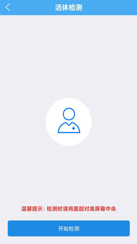 5、将面部对准屏幕中央后点击“开始检测”;