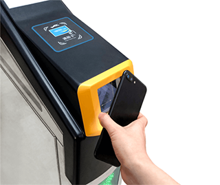 扫码过闸时,将易通行App上的乘车二维码对准闸机上的黄色扫描区,识别成功后闸门打开,乘客即可通过。