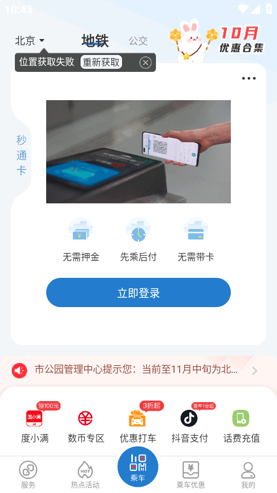 无卡化体验:摆脱实体交通卡依赖,手机即可完成乘车。