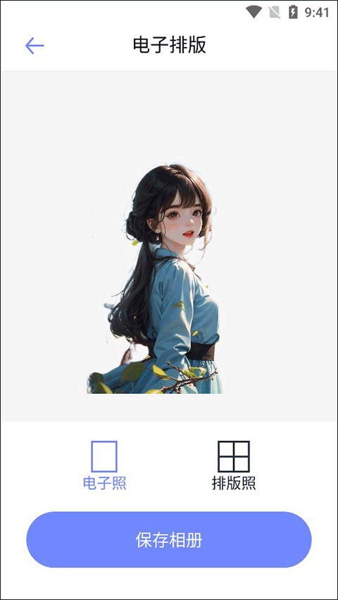 现在我们就可以进行照片排版了,我们可以选择电子照或者排版照进行保存,选择排版照去线下印出来就非常方便了。