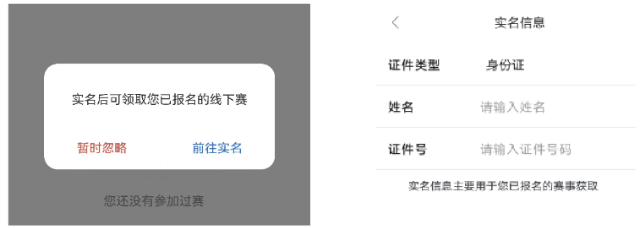 1.2首次使用Running派App,请预留实名认证,以便完成赛事信息匹配、赛事签约等环节