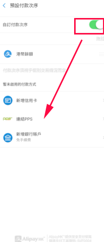 开启「自订付款次序」