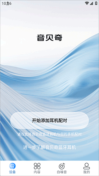 1、打开音贝奇APP,确保手机蓝牙功能已开启,将耳机放入充电盒并保持开盖状态,点击app上的【开始添加】