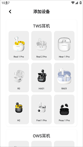 2、APP自动搜索附近设备,在列表中选择与耳机型号匹配的名称(如“YINPAGE X1”)。