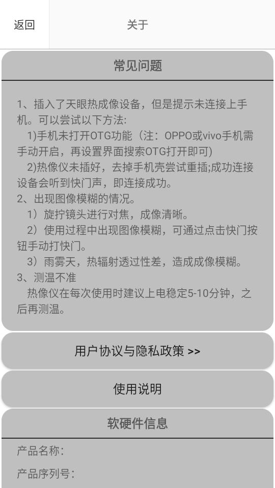 1)手机未打开OTG功能(注:OPPO或vivo手机需手动开启,再设置界面搜索OTG打开即可)2)热像仪未插好,去掉手机壳尝试重插;成功连接设备会听到快门声,即连接成功。