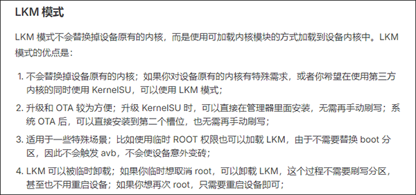 2、LKM:使用可加载内核模块(LKM)的方式加载到设备内核中,不会替换掉设备原有的内核。