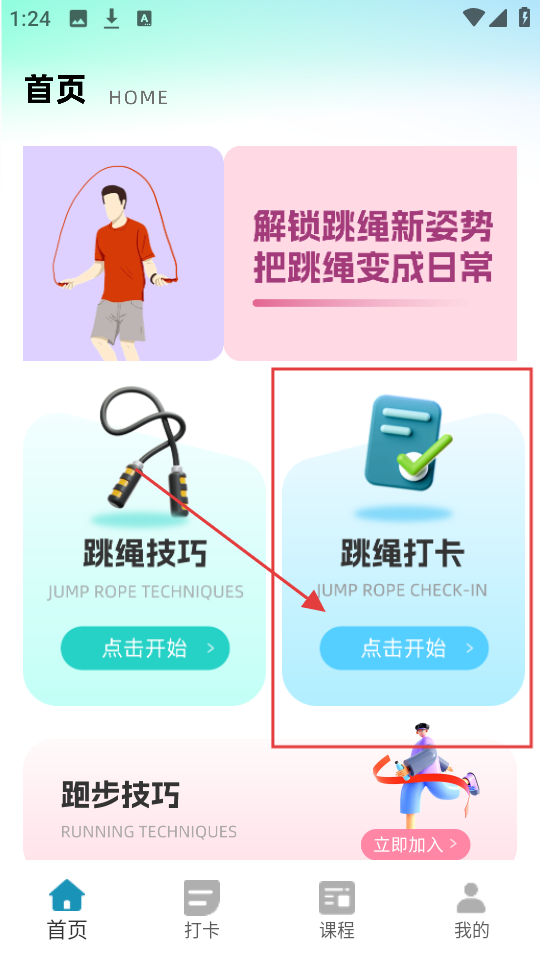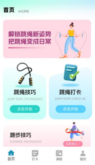 2、首页提供了跳绳技巧,跳绳打卡,跑步技巧等内容,都是可以直接去掌握的。