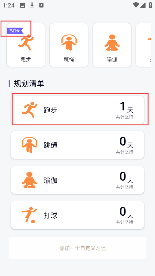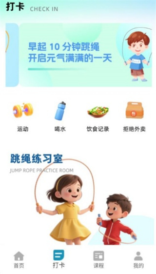 3、进入到打卡界面,既可以跳绳打卡,还可以进行喝水,饮食记录,满足更多需求。