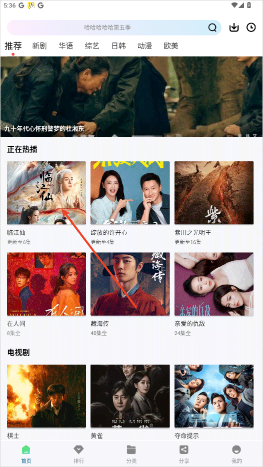 1、用户直接使用搜索框来搜索你要看的电视,或者直接通过分类,排行等来选择感兴趣的电视剧