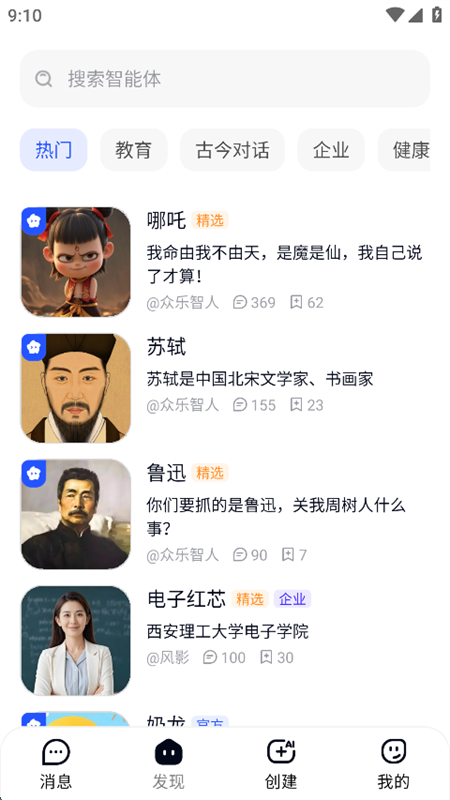 2、进入主页可以看到超多丰富的智能体