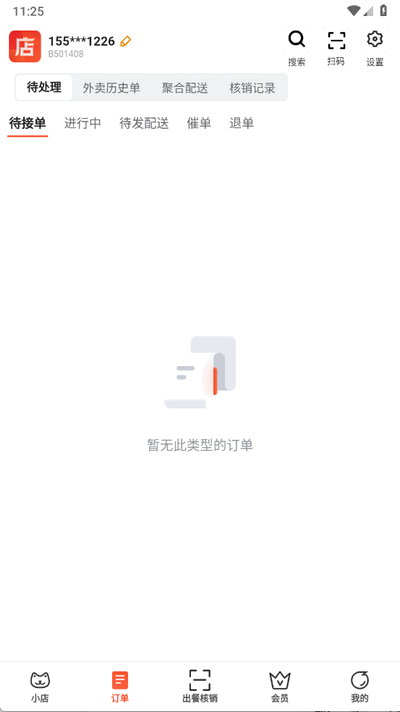 4、点击出餐核销,使用扫一扫进行订单的核销