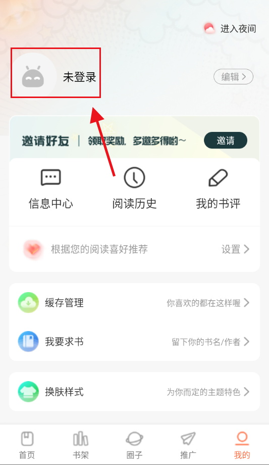 1、进入【我的】,点击上方【未登录】