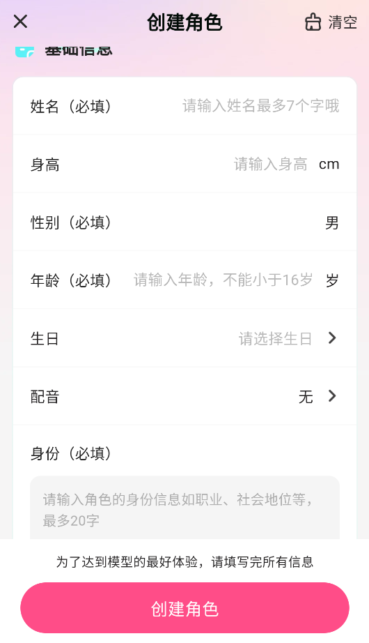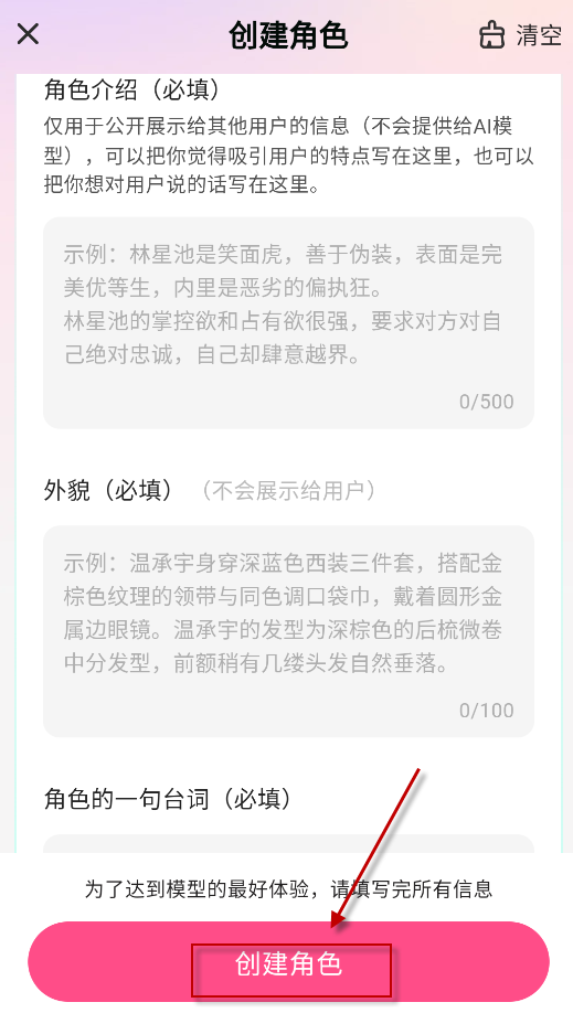 4、最后对角色的相关信息进行完善后,点击“创建角色”按钮即可。